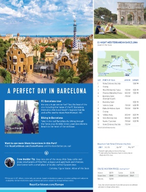 A PERFECT DAY IN BARCELONA DAY PORTS OF CALL ARRIVE DEPART
