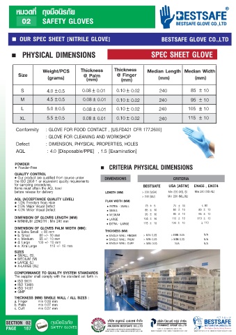 OUR SPEC SHEET [NITRILE GLOVE] BESTSAFE GLOVE CO.,LTD