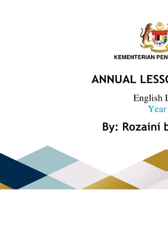 KEMENTERIAN PENDIDIKAN MALAYSIA ANNUAL LESSON PLAN 2020 English Language Year 3 SK By: Rozaini binti Tukimin