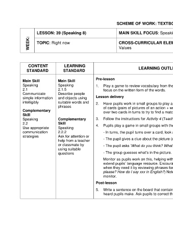 Speaking Speaking 1. Play a game to review vocabulary from the previous lesson. This should Student’s Book, needs of your pupils and class. Please
