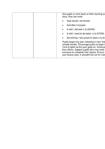 (simple words). Encourage pupils to begin to reflect more deeply and using