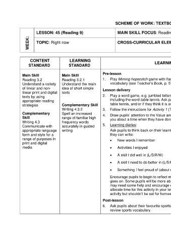 texts by using 2. Play a word game, e.g. jumbled letters, to review sports and games vocabulary, Teacher’s Book, differentiation