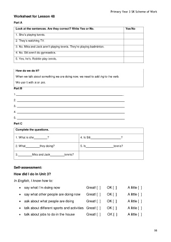 talk about different sports and activities Great! [ ] OK [ ] A little [ ]