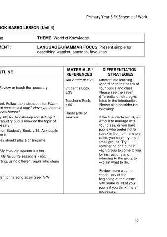 simple texts 2. Put the four seasons flashcards on the board. Follow the instructions for Warm p.60 Please also consider the