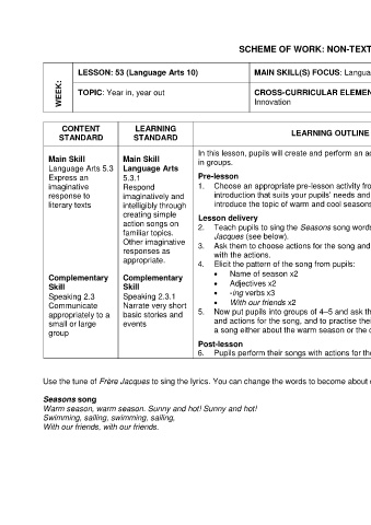 SCHEME OF WORK: NON-TEXTBOOK BASED LESSON (Unit 4)