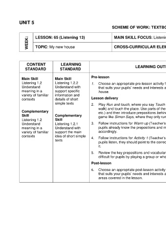 SCHEME OF WORK: TEXTBOOK BASED LESSON (Unit 5)