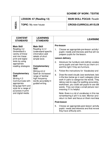 texts by using 2. Introduce the furniture and clothes vocabulary using the flashcards. Give out the cards to Furniture and strategies listed in the