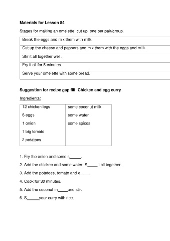 Stages for making an omelette: cut up, one per pair/group.