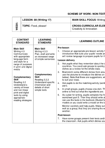 and non-linear simple texts 5. In small groups, pupils choose one dish. They should check