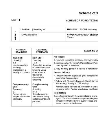 UNIT 1 SCHEME OF WORK: TEXTBOOK BASED LESSON (Unit 1)