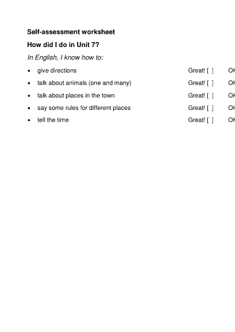 talk about places in the town Great! [ ] OK [ ] A little [ ]