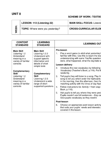 SCHEME OF WORK: TEXTBOOK BASED LESSON (Unit 8)