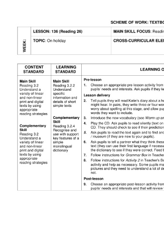 SCHEME OF WORK: TEXTBOOK BASED LESSON (Unit 9)