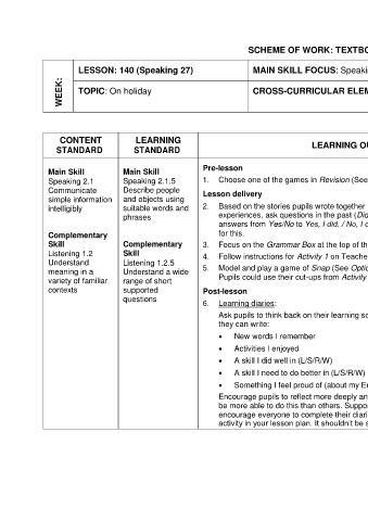 SCHEME OF WORK: TEXTBOOK BASED LESSON (Unit 9)