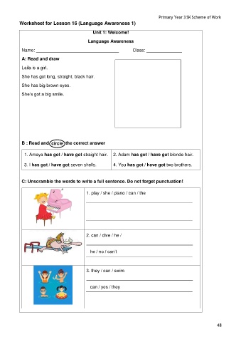 1. Amaya has got / have got straight hair. 2. Adam has got / have got blonde hair.