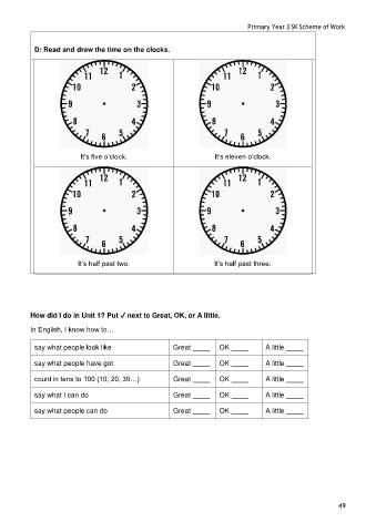 D: Read and draw the time on the clocks.