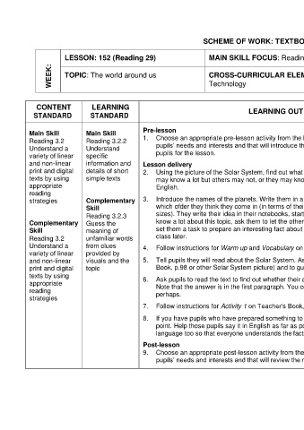 Understand a Understand pupils’ needs and interests and that will introduce the topic of the Solar System to prepare p.98 of your pupils and class.