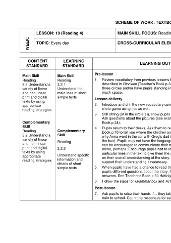 LESSON: 19 (Reading 4) MAIN SKILL FOCUS: Reading THEME: World of Self, Family and Friends