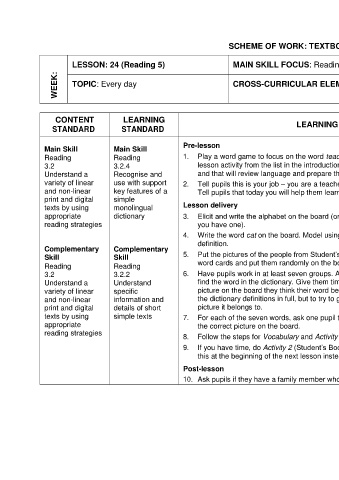 LESSON: 24 (Reading 5) MAIN SKILL FOCUS: Reading THEME: World of Self, Family and Friends