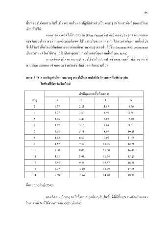 ตารางที 73 การเจรญเติบโตทางความสูงของไมในสวนปาที ดัชนีคุณภาพพนที ตางๆ กัน