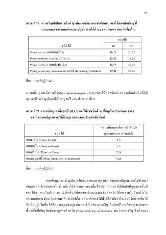 ตารางที 77 ความเพิ มพูนเฉลี ยรายป (MAI) ของไมสนชนิดตางๆ ที ปลูกในแปลงทดลองของ
