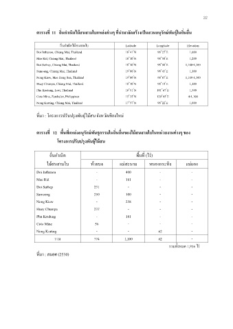 ตารางที 11 ถิ นกําเนิดไมสนสามใบแหลงตางๆ ที นํามาจัดสรางเปนสวนอนุรกษพันธุในถิ นอื น