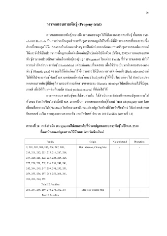 ห้วยบง จังหวัดเชยงใหม่ เมื อป พ.ศ. 2530 เปนการทดสอบสายพันธ์ข้างแม่ (Half-sib progeny test) โดย