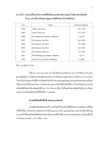 ตารางที 16 แหลงแมไมจากปาธรรมชาติที คัดเลอกและเก็บเมล็ดมาปลูกสรางเปนแหลงผลิตเมล็ด
