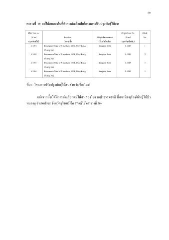ตารางที 19 แมไมสนสองใบที ทําการคัดเลือกในโครงการปรบปรุงพันธุไมสน