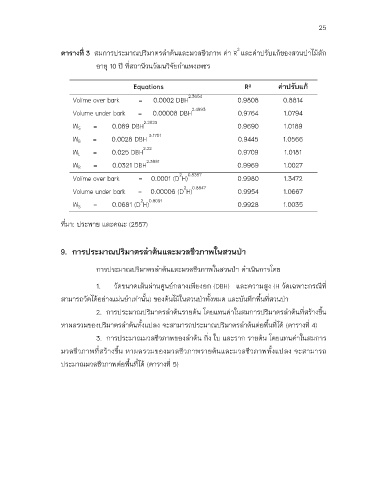 ตารางท 3 สมการประมาณปริมาตรลําตนและมวลชวภาพ คา R และคาปรบแกของสวนปาไมสัก