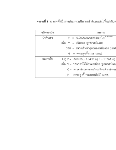 ตารางที่ 1 สมการทีใชในการประมาณปริมาตรลําตนของตนไมในปาดิบเขาและปาสน