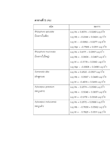 (โกงกางใบใหญ) Log Wb = -0.3606 + 0.0467 Log D H 0.7972