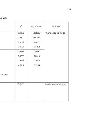 Species Equation R 2 Adjust value Reference