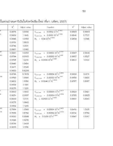 ตารางท 7 สมการทีใชในการประมาณปริมาตรลาตนและมวลชวภาพของตนไมในสวนปาสนคาริเบียในจงหวัดเชยงใหม (ที่มา: บพิตร, 2557)