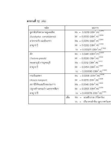 ยคาลิปตสคามาลดูเลนซิส Ws = 0.0239 (DBH .Ht) 0.9778 0.9991 Vacharangkura (2001)