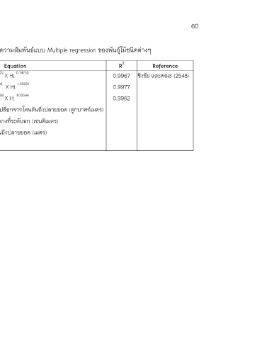 ตารางที่ 17 สมการที่ใชในการประมาณปริมาตรลําตนของตนไมในรปแบบของความสัมพันธแบบ Multiple regression ของพันธุไมชนิดตางๆ