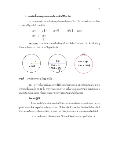 1) ขนาดเสนรอบวงเพียงอก (GBH) ใหแปลงคาโดยคํานวณจากสูตรใน ขอ 2.1