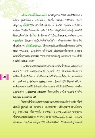 20 เคมีของน้ำมันที่ได้พบว่า น้ำมันเทพทาโรที่กลั่นจากเนื้อไม้ ใบ รากและผล 21