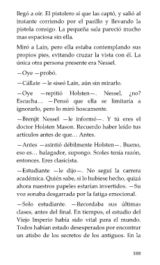 —Cállate —le siseó Lain, aún sin mirarlo.