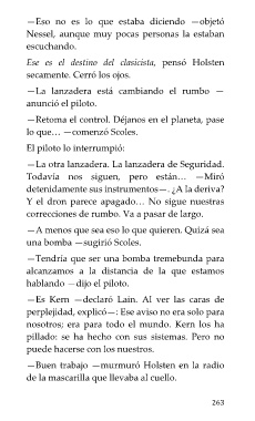 —Buen trabajo —murmuró Holsten en la radio