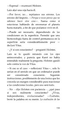 —¿Y si son conscientes? —preguntó Holsten.