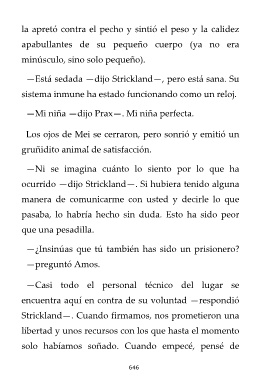 —Está sedada —dijo Strickland—, pero está sana. Su