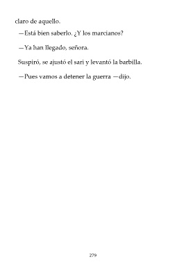claro de aquello. —Está bien saberlo. ¿Y los marcianos? —Ya han llegado, señora. Suspiró, se ajustó el sari y levantó la barbilla. —Pues vamos a detener la guerra —dijo. 279
