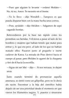 —Prax, ayúdalo —dijo Holden—. Salgamos de aquí