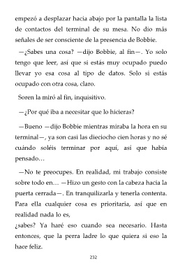 —¿Sabes una cosa? —dijo Bobbie, al fin—. Yo solo