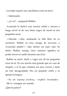 —Es un Lapsang souchong —explicó Avasarala—.