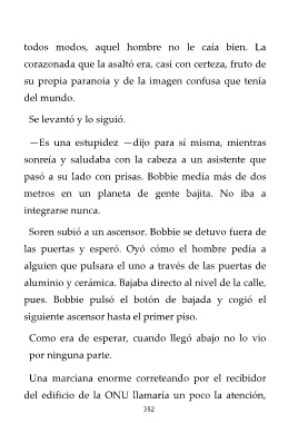 Soren subió a un ascensor. Bobbie se detuvo fuera de
