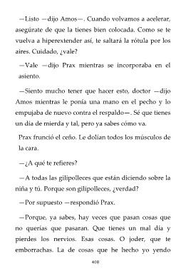 —Listo —dijo Amos—. Cuando volvamos a acelerar,