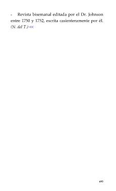 [5] Revista bisemanal editada por el Dr. Johnson entre 1750 y 1752, escrita casienteramente por él. (N. del T.) << 693