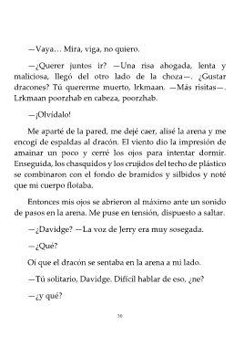 Oí que el dracón se sentaba en la arena a mi lado.